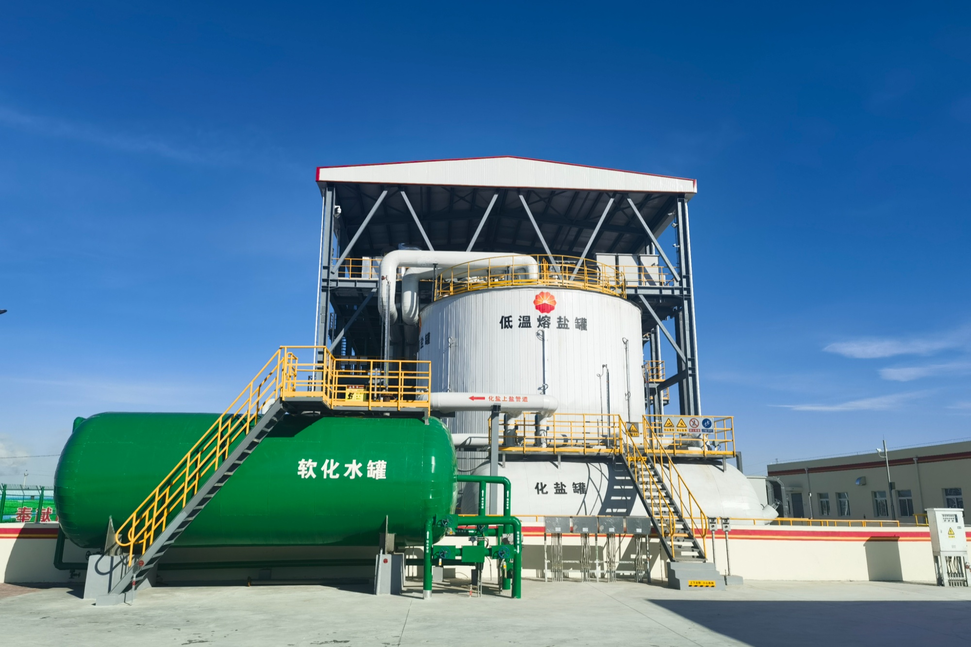 针对这种情况,油田经过13年不懈攻关,成功投运国际首套1兆瓦井下大功率电加热蒸汽提干装置,相当于在井底增加了一个清洁“锅炉”,为稠油开采过程以电代气、提产提效和降碳减排开辟新的路径。他们还积极开展电热熔盐注汽技术研究与试验,首次将熔盐储能技术应用于稠油注汽开发,建成世界首座电热熔盐储能注汽站,迈出了改变稠油热采中蒸汽生产方式的第一步。